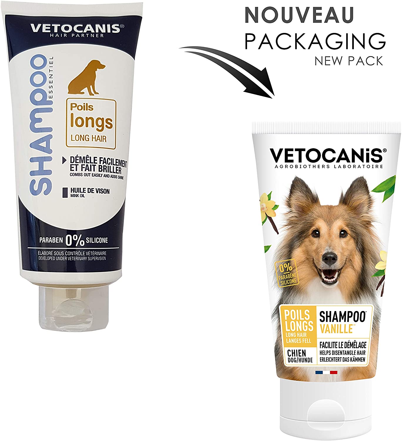 Shampooing démêlant pour chiens à poils longs Vetocanis à la vanille, 0,308 kg