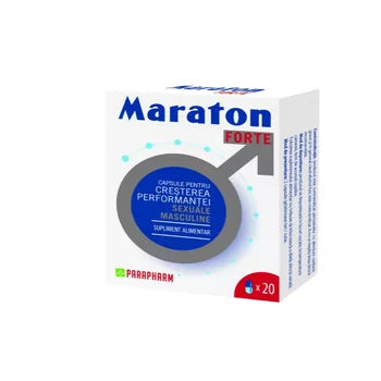 Maraton Forte 20 capsules Parapharm (capsules to increase male sexual performance), contains active ingredients: l-arginine and can be used based on the doctor's recommendation in medical conditions such as: impotence (erectile dysfunction) medicinal plants: Asian ginseng extract (Panax ginseng), Siberian ginseng extract (Eleutherococcus senticosus), guarana extract (Paullinia cupana), muira puama extract, Tribulus extract (Tribulus terrestris).