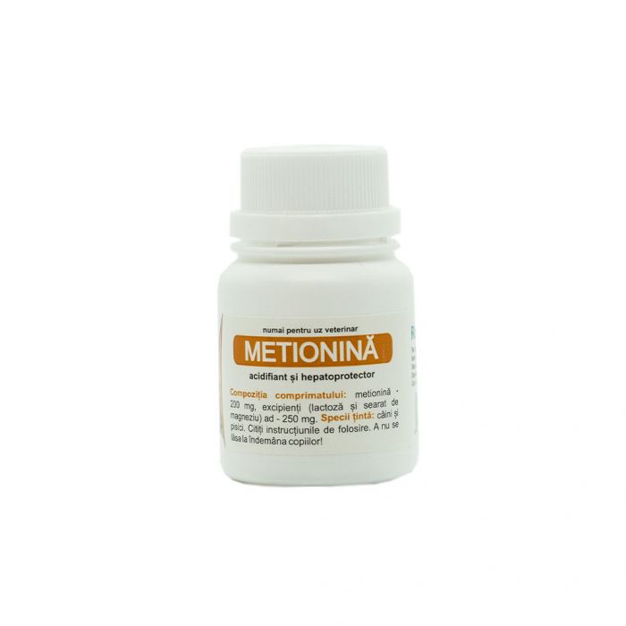 La metionina è un amminoacido essenziale (tioaminoacido), che può essere utilizzato per abbassare (acidificare) il pH urinario, come trattamento aggiuntivo o preventivo nell'urolitiasi nei cani e nei gatti. Può anche essere utilizzato come fonte aggiuntiva di metionina per correggere razioni carenti.